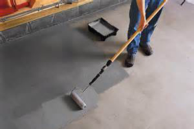 Гидроизоляционный раствор наносится как шпатлевка, тонким слоем на пол, с захватом прилагающих стен (в виде корыта).