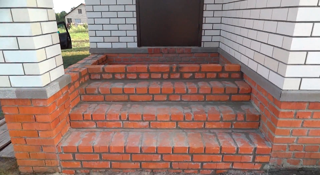 Кирпичное крыльцо по монтируется не меньше 1,5 ширины входной двери дома.