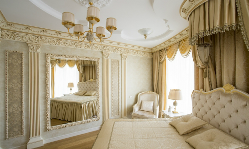 Использование соответствующих пропорций и форм. Небольшая или узкая комната может выглядеть больше, если большое зеркало помещается на одной из стен. Использование яркого освещения с зеркалами также могут сделать небольшие комнаты визуально больше. Использование множества маленьких зеркал на больших стенах или в больших помещениях может сделать комнату меньше или хаотичнее. Чтобы сохранить большую комнату большой, следует использовать фрагменты зеркал, которые соответствуют пропорции помещения.