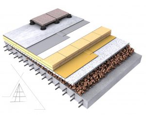 Применение плоских крыш распространено в строительстве частных домов, многоэтажных зданий, а также административных построек и промышленных предприятий. Основное отличие плоской кровли от скатных вариантов это в первую очередь угол уклона, в плоском сооружении он практически отсутствует. Согласно СНиП (СП 17.13330.2011) разуклонка такого сооружения должна быть 1-2 градуса (1,5-3 процента) для эксплуатируемых кровель и до 6 градусов (10%) в неэксплуатируемых. По сути, плоская крыша — это плита перекрытия, выполненная из бетона, сборных железобетонных плит, металлического профлиста или другого жёсткого основания, опирающиеся на конструктив стены здания или другого опорного элемента и имеющая определённые слои в зависимости от назначения кровли.