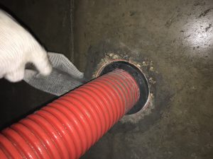 - Заполнение штрабы вокруг металлической гильзы и пространства между инженерными коммуникациями и гильзой