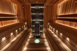 Наиболее распространенным вариантом является обшивка стен и потолка. Кроме того, полок канадского кедра, который используют для напольного покрытия — прекрасный материал для изготовления сидячих мест. Он обеспечивает комфортные тактильные ощущения внутри парилки. Кроме того, эту древесину часто используют и для изготовления сауновых бочек.