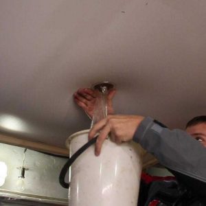 Вот как происходит слив воды с натяжного потолка с помощью конденсатоотводчиков: